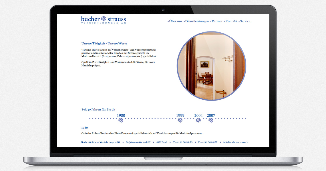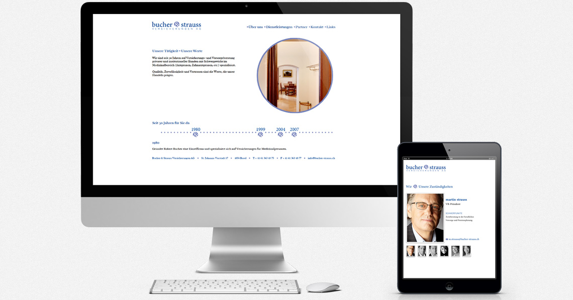 Für die Firma Bucher & Strauss Versicherungen AG haben wir den neuen Internetauftritt entwickelt und das Corporate Identity neu gestaltet.