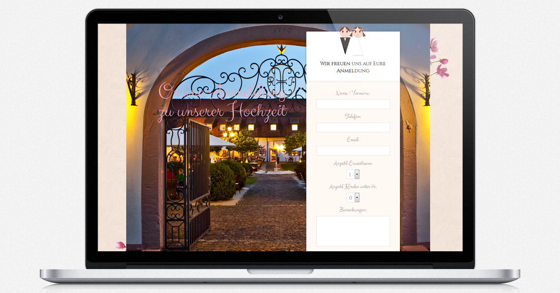 digitalminds studios hat für das Brautpaar eine Hochzeitswebseite mit speziellen Features entwickelt. Die Gäste können sich so ganz einfach online Anmelden.
