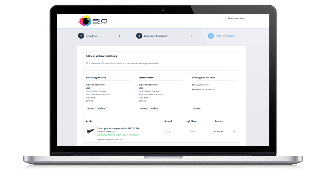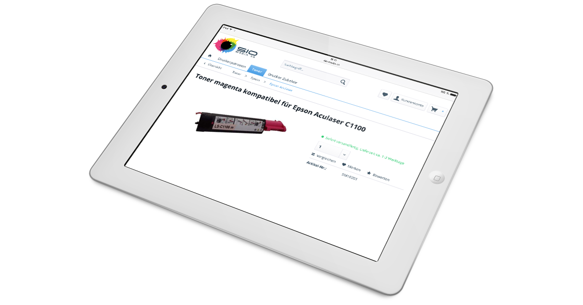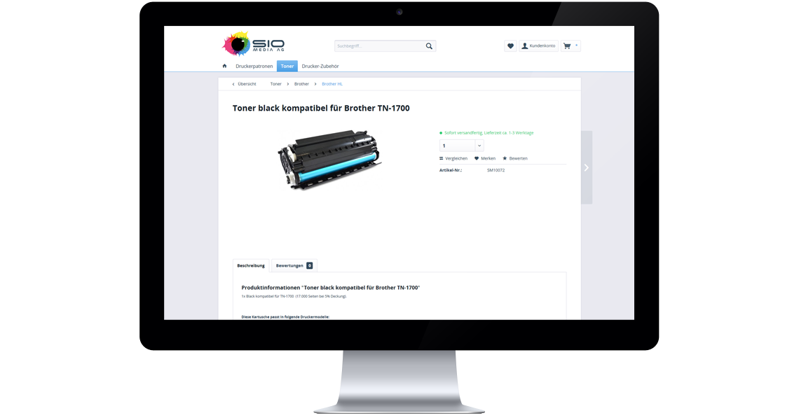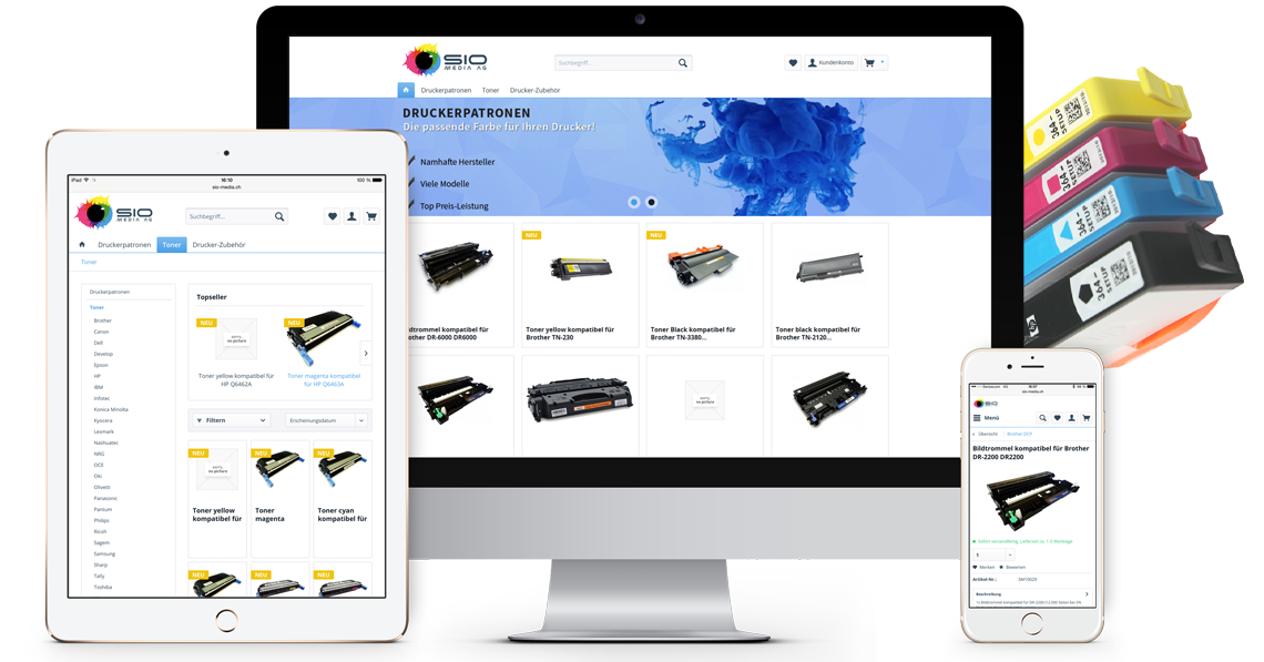 „Responsive Online Shop für SIO Media AG, der Fachmann für Druckerpatronen, Toner und Zubehör.“